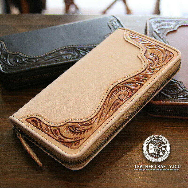 レザーウォレット 長財布 本革 ウォレット 革財布 ラウンドファスナー カービング ハンドメイド 財布 サドルレザー 誕生日プレゼント ギフトzip-cv003 革小物 ロングウォレット ラウンドジップ レザー 女性 母の日ギフト 退職祝い お父さん 男性 義母